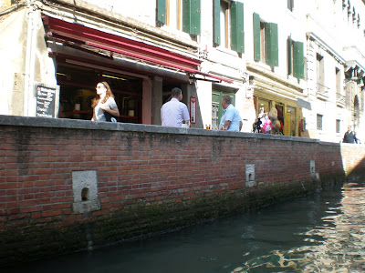 Един ноемврийски следобед с Иво прегладнели бяхме минали оттам, бяхме пропуснали обяда обикаляйки залите и стълбите на Палацо Дукале, а след това бяха взели vaporetto и слезли на Академията, за да отидем и до Ка` Рецонико. Щеше да е хубаво да знаехме за този Ботегон и да бяхме изпили по чаша вино там с cichèti ("чикети") или да хапнем по един сандвич на крак... Ресторатите след 2 и половина приключваха и не ми и хрумна да влезем в някой бакаро. Но човек няма как да знае всичко. И кой ще ти гледа във Венеция пътеводителя и ще ги търси тези бакари там... Названието на този е доста любопитно - Cantinе del vino già schiavi (в смисъла на „вече роби на избите с вино” доколкото схващам). От три поколония този бакаро или ако предпочитате тази енотека е собственост на семейство Гасталди, което нашият Фаусто както пише в блога си, че познава от 40 години, което ще рече от дете.